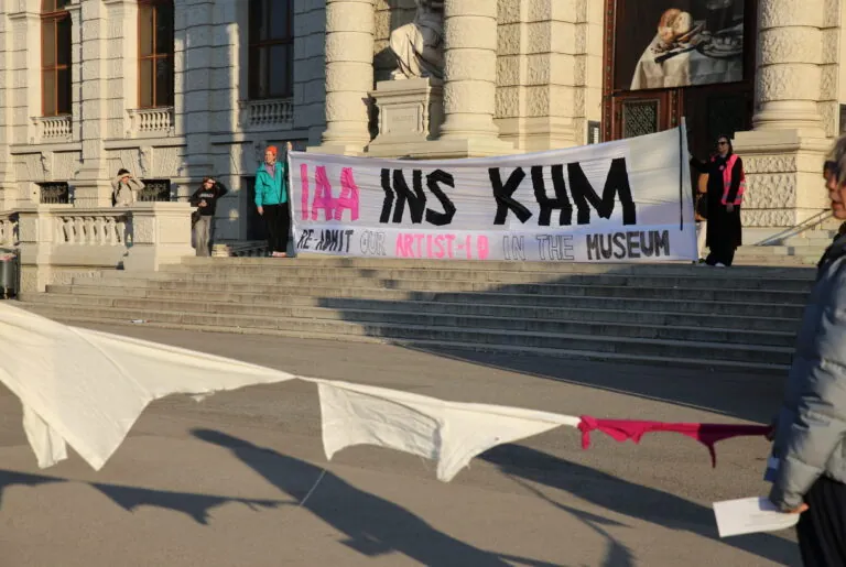 Protestkundgebung vor dem Kunsthistorischen Museum: Künstler:innen fordern freien Eintritt mit IAA-Ausweis